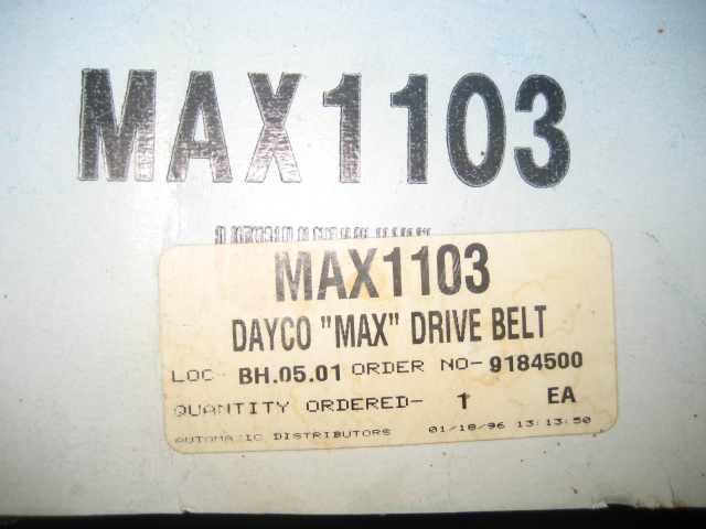 Search for: Advanced Search Place Ad Edit Ad Browse Ads Search Ads New Dayco Max BeltClick to enlarge image.Contact InformationContact peterPhone: 603-321-6955 Price: $ 35.00 More InformationNew Dayco belt Dayco max 1103 Thx for the site This Ad has been viewed 160 times.