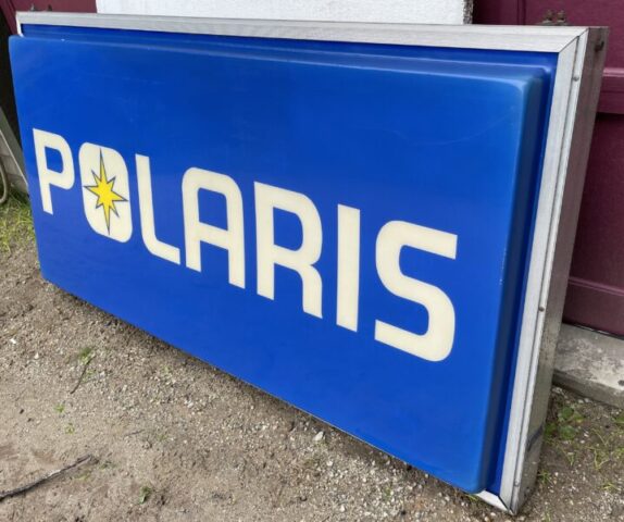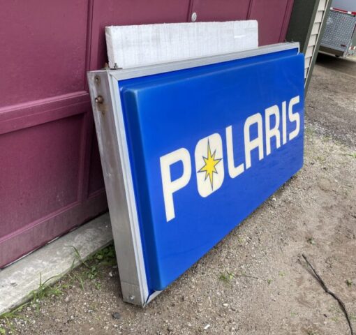 The New Hampshire Snowmobile Museum has this Polaris dealer sign for sale, it is from the early 80's. It is a two sided lighted sign, the bulbs are not in it though. The sign is in overall good condition, it does show some light discoloration from being hung outside at the dealer for years, there are no breaks or cracks in the plastic. The sign will be available at the swap at the museum on Saturday, come check it out! We are asking $1500 for the sign, the proceeds will help to support museum operations.