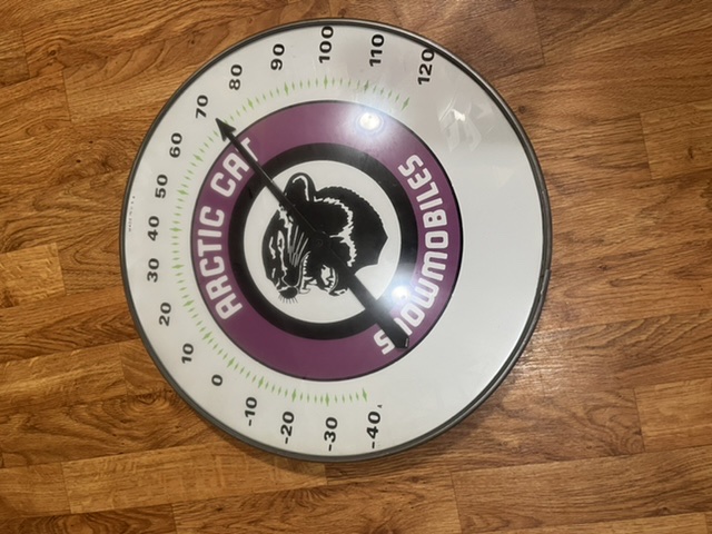 Super rare 1972 dealer issued only thermometer a beauty 18” sundial in absolute perfect condition no fade or rust aluminum rim and lense dome are perfect one of the most sought after cat collectibles $950 is the price and no lower would prefer pickup in Albany area or ship at owners expense serious inquiries only please
