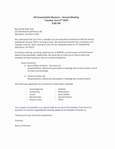The New Hampshire Snowmobile Museum's annual meeting