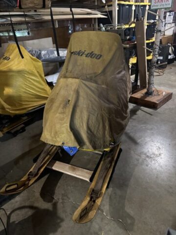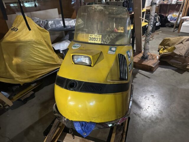 I believe it’s a 1970 Olympic 335E. Has not run in a while. Motor turns over well and has good compression. Seat is in descent shape. Cowl has a few cracks but in overall good shape. Track and cogs are original. Track is ok for its age. I started restoring it a few years ago and do not have the time to finish. Original cover included.