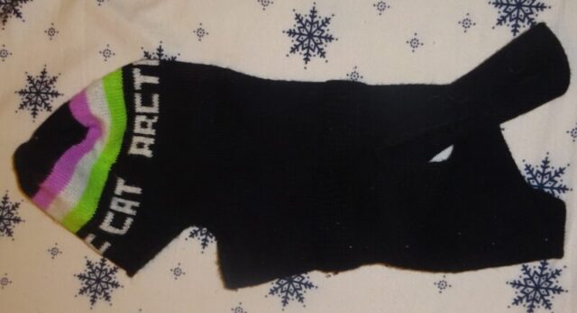 Vintage Arctic Cat Balaclava Full Face. Excellent condition. The colors are crisp and bright, and I haven’t found any defects in the woven hat. This item is clean and has been stored inside my no-smoking, no pets, and humidity-controlled home since I bought it. $30.00 plus shipping if applicable. I have nine separate Vintage Arctic Cat clothing items for sale on this site, so if you want to buy two or more items, I’m willing to work out a package price. I can be contacted by email: wookie_9876@yahoo.com. That is wookie(underscore)9876@yahoo.com.